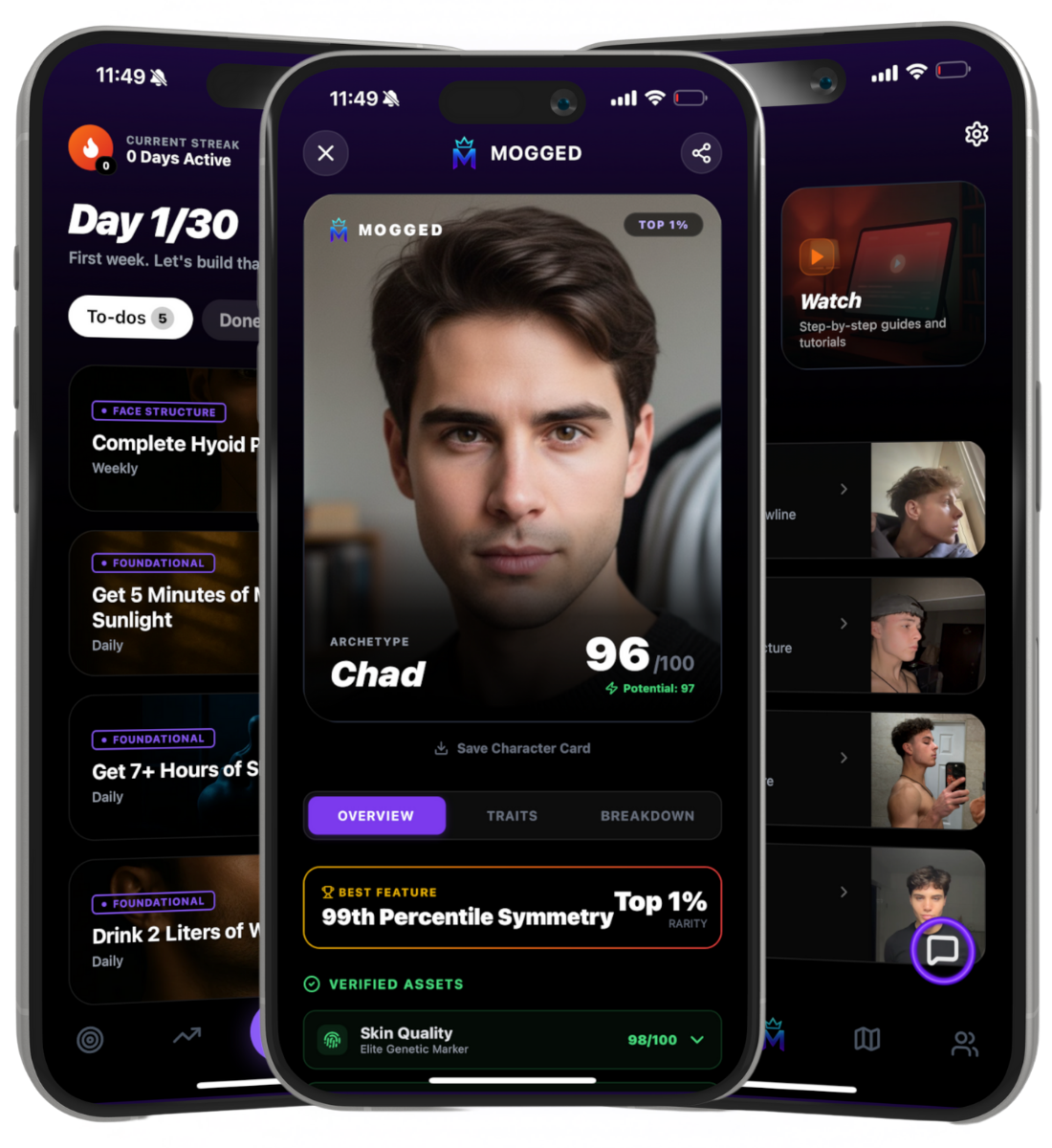 Most apps just give you a filter. MOGGED uses AI to analyze YOUR specific face and builds a custom plan. It's a gamified system that forces consistency.